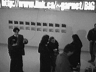 The BIG url reception/party was a smashing success. Over 100 people showed up on Saturday, December 3rd 1995, enjoying delightful food, snacks and beverages. These images capture a few of the other artists participating in the group exhibition in the gallery.