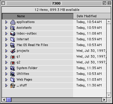 A graphically simpler offering from Rachel Baker, a London-based Internet artist, makes a social comment. When read in sequence, the labels on her vertical stack of carefully arranged icons say, "bureaucracy does not allow disorganized desktops."