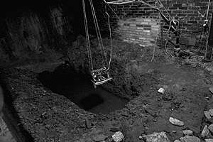 L U M I N O U S . E X P E R I M E N T G A R N E T . H E R T Z TV, basement excavation, ambient groundwater Art on Site : Saskatoon, SK, Canada 1995