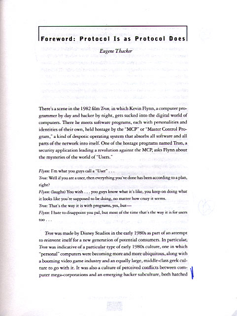 This text is the foreward to Alex Galloway's Protocol: How Control Exists after Decentralization (2004).