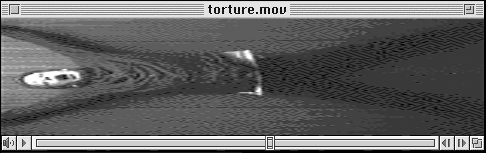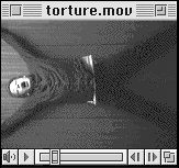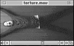 This QuickTime clip works with the ability of the viewer to stretch and manipulate the digital video frame while it is playing. This "torture.mov" video is a short six second clip of a yelling individual with outstretched arms and legs that is meant to played in a continual loop as it is resized.